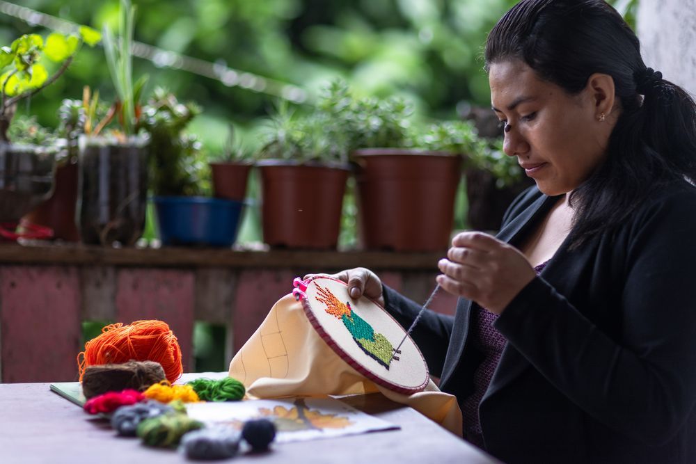 Ella vive en el caserío Palestina, en el distrito de Nueva Cajamarca, un lugar conocido por las cuevas de Palestina y por contar con el primer mariposario de San Martín. Desde allí, junto a su comunidad y otras zonas vecinas, trabaja en la artesanía y la conservación.