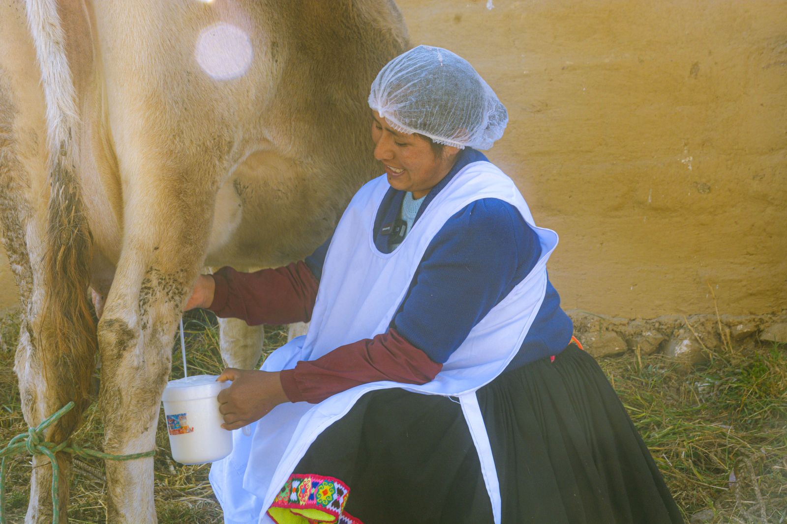 Soy un pésimo alumno. Intento ordeñar, pero no puedo. La leche no sale. Maritza se ríe, la vaca se molesta. Renuncio. Mejor converso y bromeo, mientras ella me demuestra sus habilidades y me cuenta que tiene seis reses, que desde hace un año trabaja de manera independiente con su esposo, que su jornada empieza al amanecer y que su hijito le da el biberón al becerrito que nació hace dos semanas.