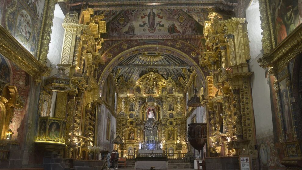 Arte en el altar, en las paredes, en los techos, en todo los espacios y rincones de una de las paradas principales de la Ruta del Barroco Andino, un itinerario turístico que incluye a los templos de La Compañía de Jesús (Centro Histórico) y San Juan Bautista de Huaro, y a la capilla de la Virgen Purificada de Caninunca.